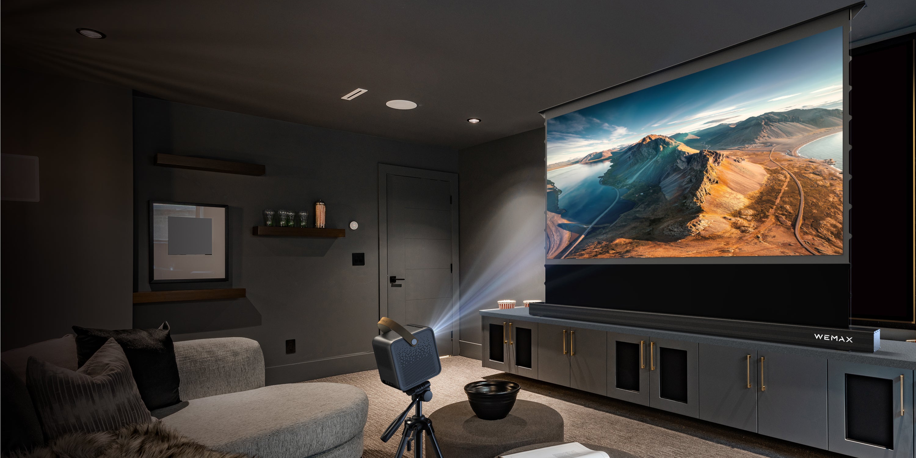 Beamora 120" Motorized Floor Rising Tension ALR & CLR UST Projector Screen for Ultra Short Throw Projector | RS10